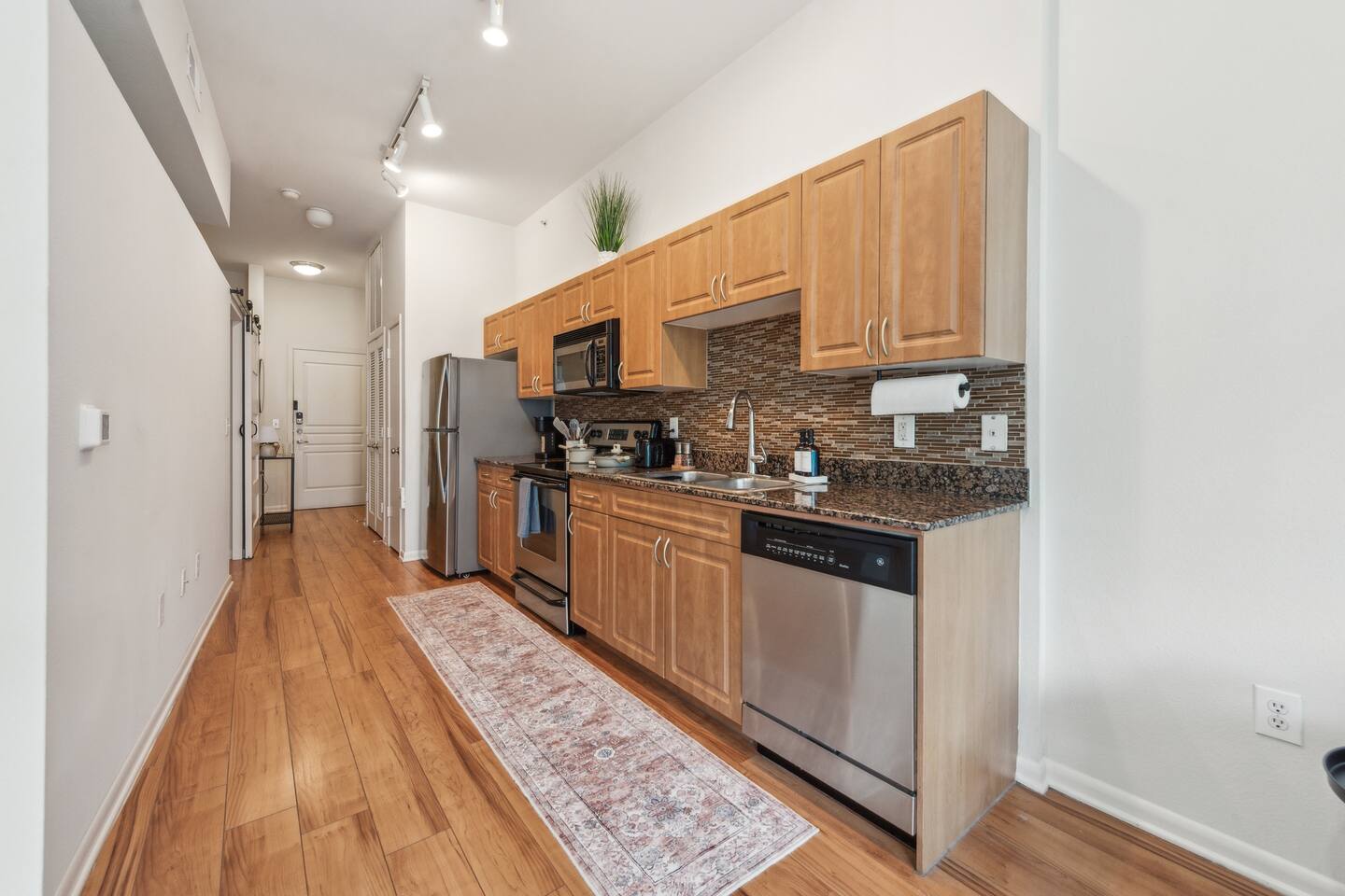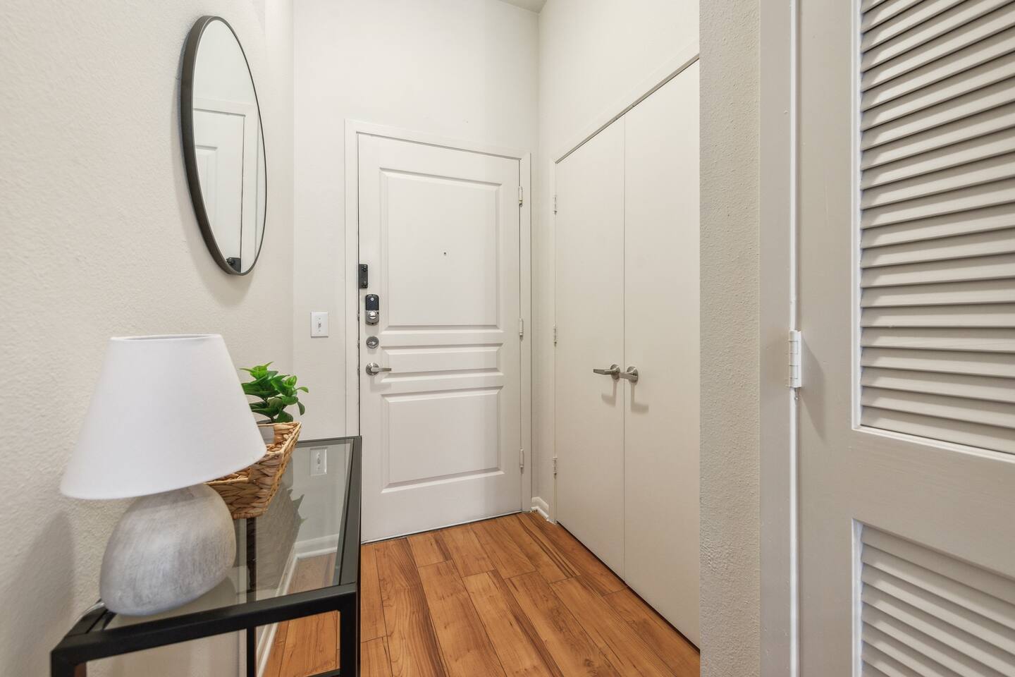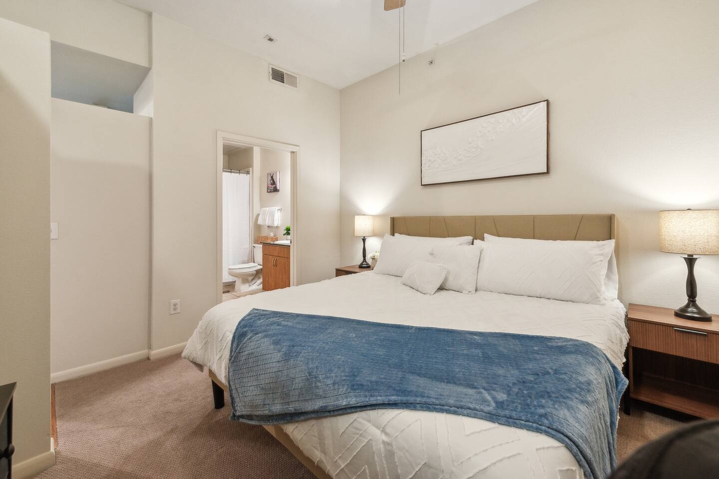 Experience style and convenience at a centrally located oasis in heart of Austin's prime location, The Domain. Luxury meets convenience in this spacious residence featuring a king-size bed and an expansive living room. Indulge in upscale shopping, dining, and entertainment steps from your door. Access the gym and pool, with hassle-free parking. Immerse yourself in upscale comfort!