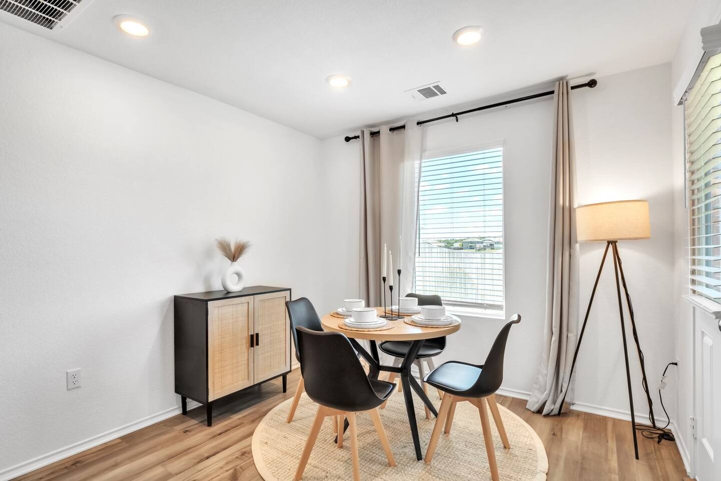 Kick back and relax in this calm, stylish space. Escape the hustle and bustle of everyday life and experience the serenity and peaceful atmosphere of this home. Whether you’re preparing a delicious home-cooked meal or simply brewing a cup of coffee to savor on the private patio you will feel right at home. You can explore nearby biking, hiking trails and vineyards. This tranquil retreat offers the perfect combination of comfort and tranquility. 15 -17min from COTA, Tesla, and the Airport.